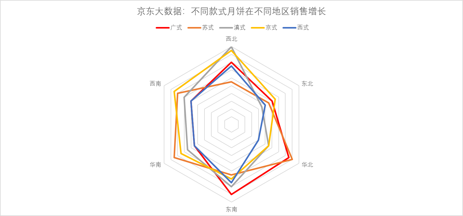 此前有報(bào)告顯示,消費(fèi)者購買月餅渠道更多樣化,已然形成線上為主、線下為輔的趨勢(shì)。而隨著京東渠道的滲透、物流的下沉,很多偏遠(yuǎn)地區(qū)的線上消費(fèi)比例也越來越大,比如西北地區(qū)消費(fèi)者購買廣式和京式月餅的同比增長分別達(dá)160%和190%,線上銷售的方式打破了區(qū)域間的地理限制,跨區(qū)域嘗鮮成為潮流,而且促進(jìn)了全國各地節(jié)( chi)日( huo)的交流。