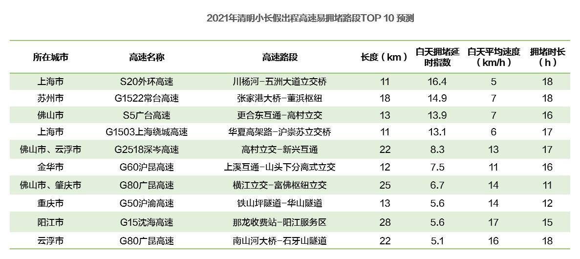 高速擁堵路段:上海S20外環(huán)高速和S51肇陽高速云浮段預(yù)計(jì)最堵
