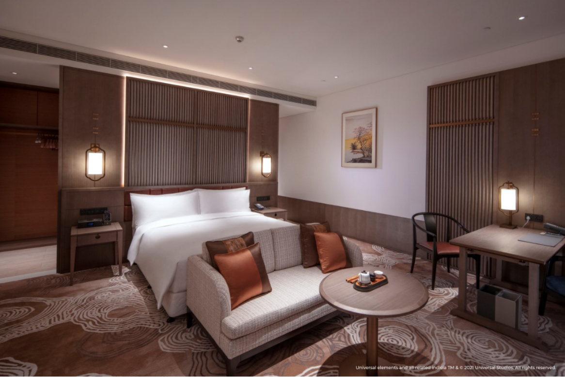 酒店設(shè)計(jì)以當(dāng)代視角詮釋中國(guó)傳統(tǒng)文化及人文歷史底蘊(yùn),兼具現(xiàn)代便捷與奢華典雅。與此同時(shí),400間寬敞雅致的客房設(shè)計(jì)也融入了中國(guó)古典皇家園林的精巧設(shè)計(jì),以天然材料刻畫(huà)自然之美。作為品牌標(biāo)志性的元素之一,所有客房均配備有煮茶套裝,賓客可以在驚險(xiǎn)刺激的主題游園體驗(yàn)之后享受輕松愉悅的茗茶時(shí)光;此外,位于酒店大堂吧的專屬茶室還將提供專業(yè)的互動(dòng)品茗體驗(yàn)。