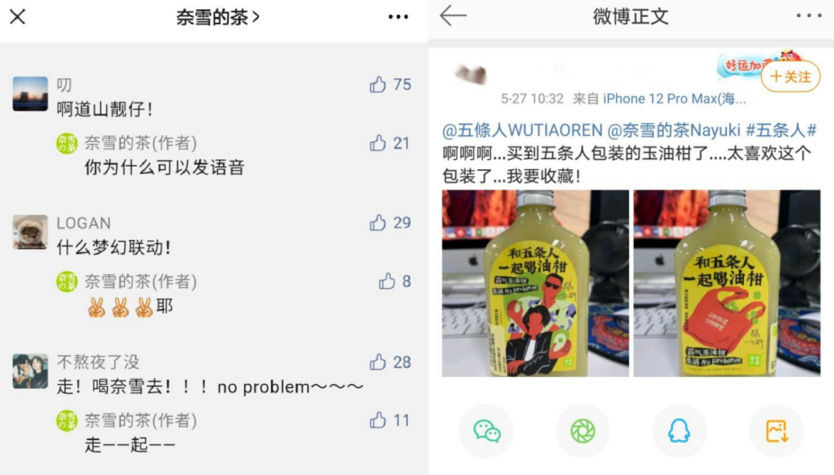 這樣“肆意妄為”的話從五條人嘴里蹦出并不稀奇,他們與生俱來的“平凡生活浪漫主義”,擅長(zhǎng)洞察事物的另一面。精妙的是,奈雪的茶洞察到用戶在日常生活中的種種焦慮,將霸氣玉油柑“先澀后甜”的特點(diǎn)比作人生滋味,用這一豁達(dá)積極的態(tài)度來輕松正能量地引導(dǎo),這一點(diǎn)與五條人的精神內(nèi)核如出一轍。5月27日奈雪的茶X五條人TVC發(fā)布后,不少網(wǎng)友表示這波是“破次元壁”的夢(mèng)幻聯(lián)動(dòng),還有網(wǎng)友在線分享五條人歌曲中有共鳴的歌詞。