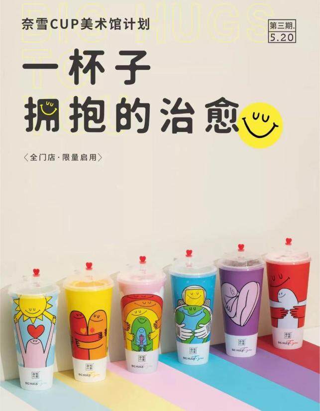 沒有財(cái)大氣粗的“品牌集郵”,也沒有投機(jī)取巧的抖機(jī)靈,奈雪似乎一直都深諳情感營銷的法門,過往也不乏優(yōu)質(zhì)案例。筆者印象最深的是“CUP美術(shù)館計(jì)劃”中的“瑞獸杯”和“抱抱杯”。前者是在2020與2021新舊年相交之際推出的,以茶飲杯為載體推出六款意頭極好的瑞獸,寓意“瑞獸相伴時(shí)來運(yùn)轉(zhuǎn)”,與消費(fèi)者新年新氣象的希冀不謀而合。