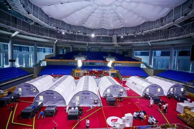從5月27號凌晨5時物料進(jìn)入場館開始,華大團(tuán)隊在深圳市衛(wèi)健委、鹽田區(qū)衛(wèi)健局、深圳鹽田區(qū)供電局、鹽田體育中心等各部門單位的大力支持和協(xié)調(diào)下,6小時內(nèi)快速搭建起2套、6個艙體的快裝式負(fù)壓硬氣膜核酸檢測實驗室(以下簡稱"硬氣膜實驗室"),隨即,鹽田區(qū)搭載了華大智造自動化設(shè)備的"火眼實驗室"投入試運(yùn)行,并在9小時內(nèi)通過專家組評審。