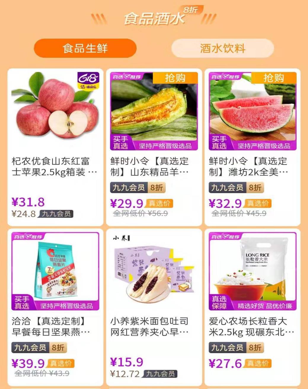 進(jìn)入618九九開門紅“大牌特賣”專區(qū),全場8折,杞農(nóng)優(yōu)食山東紅富士蘋果2.5kg箱裝折后價24.8元、山東精品羊角蜜甜瓜5斤裝折后價23.92元、愛心農(nóng)場長粒香大米2.5kg折后價22.08元……各種口碑爆款,讓大家一省到底。