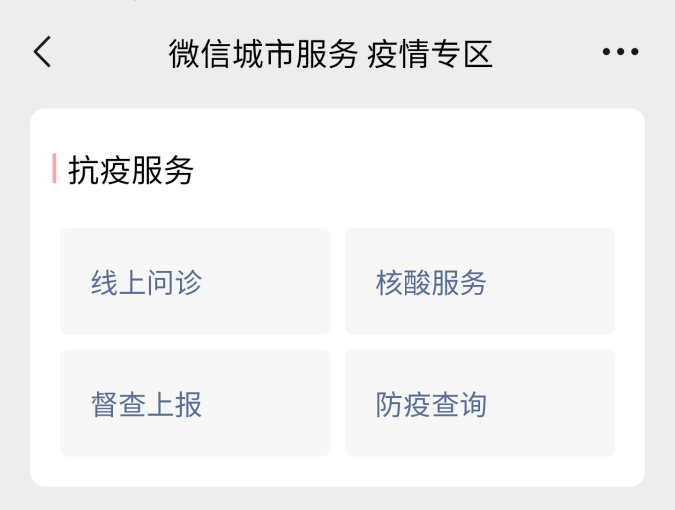 針對(duì)廣州近期疫情,微信城市服務(wù)疫情專區(qū)搭建了抗疫服務(wù)專區(qū),為廣州市民們提供三甲醫(yī)院線上問(wèn)診、核酸服務(wù)、督查上報(bào)、防疫查詢等多項(xiàng)疫情相關(guān)服務(wù),助力同心抗疫,共筑防線。
