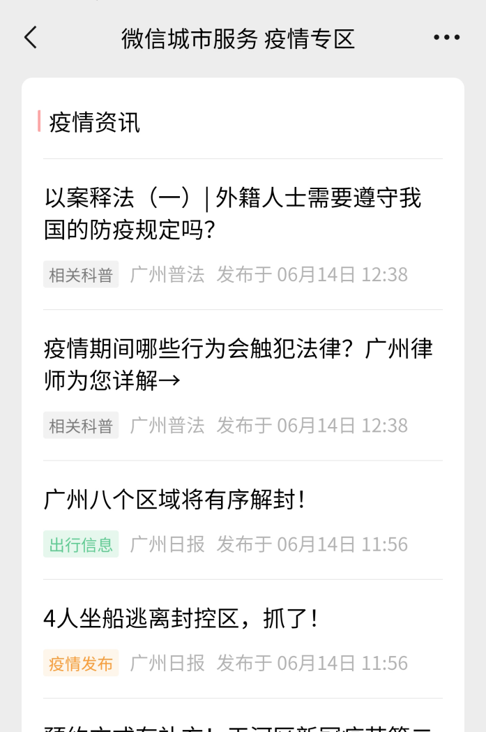 疫情資訊也加入新版專區(qū),專門(mén)為廣州市民提供官方權(quán)威的疫情資訊,方便群眾了解所在區(qū)域疫情最新動(dòng)態(tài)及政策解讀信息。