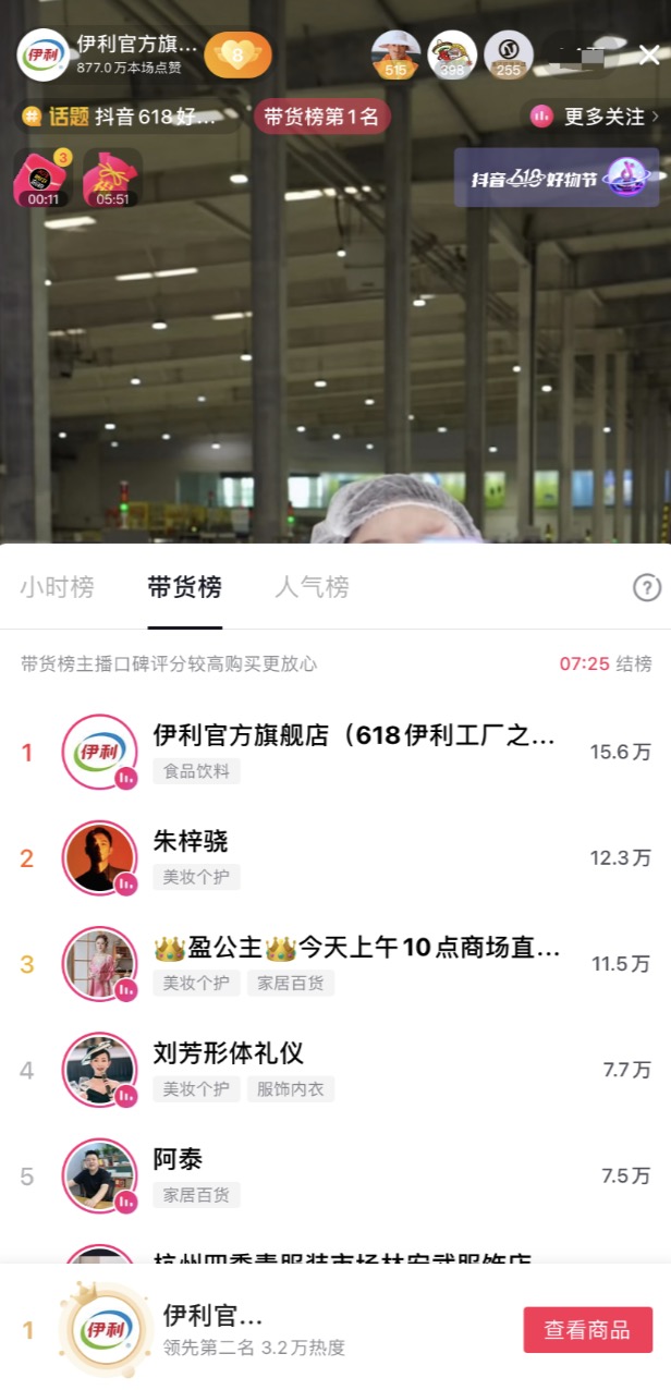 同時,伊利洞察到消費者對產(chǎn)品品質(zhì)的關(guān)注,和直播間消費者一起深入伊利工廠,直接在好奶的源頭開啟溯源直播,極大地滿足了消費者所見即所得的需求,同時也提升了直播的可看性,充分契合了興趣電商的內(nèi)核。這種新穎的直播模式最終創(chuàng)造了連續(xù)霸屏帶貨小時榜5小時的自播紀(jì)錄,在618當(dāng)天實現(xiàn)了抖音行業(yè)單日自播榜第一,單日銷售額破千萬的傲人成績。