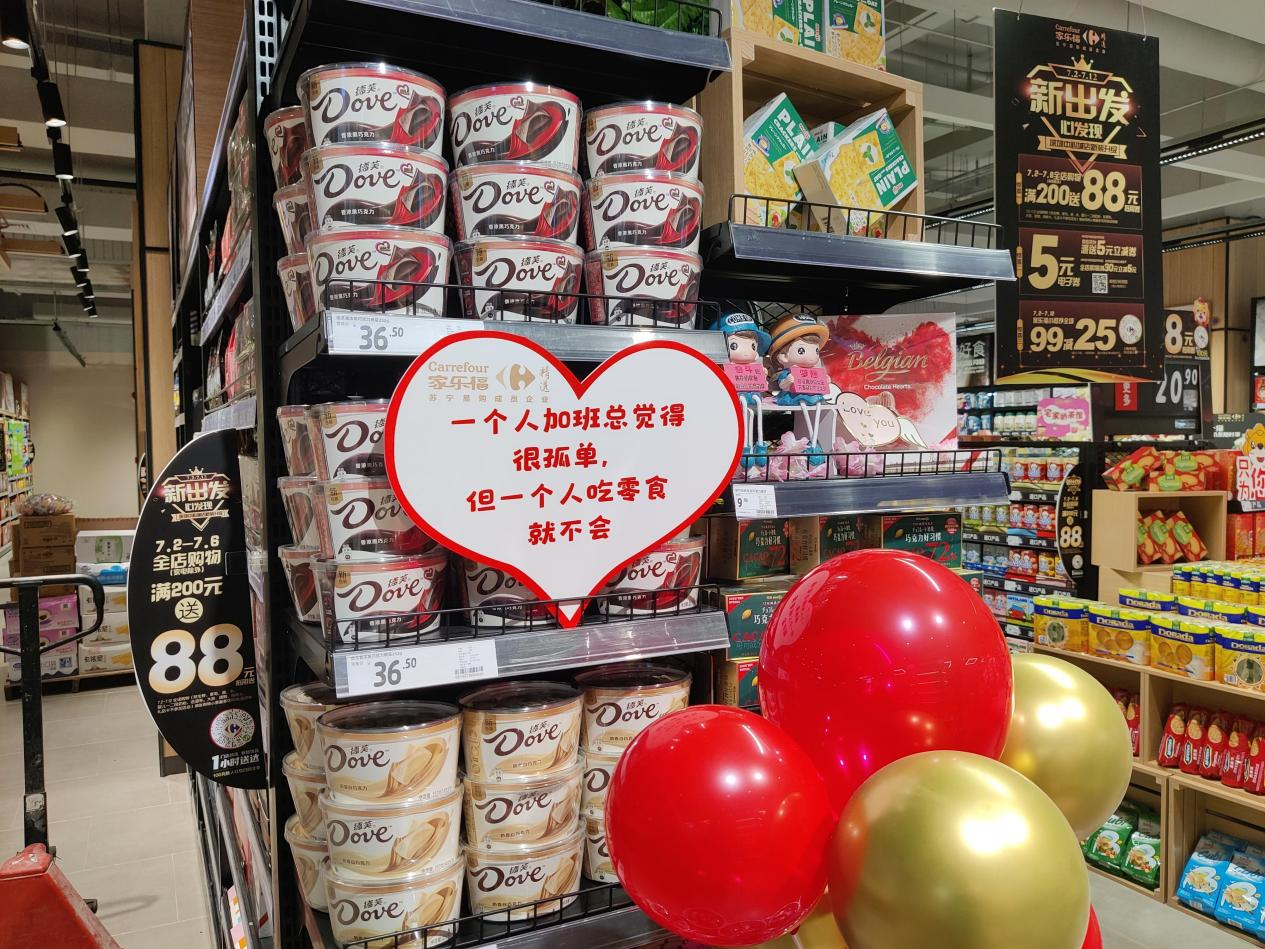 借著盛大開業(yè)的東風(fēng),家樂福社區(qū)品質(zhì)中心店推出了“優(yōu)品物語”的趣味逛店活動。該活動,在原本干巴巴的價格指示牌下面增加了諸如,“一個人吃飯很孤單,但一個人吃零食就不會”“隔壁的,你和卷心菜是什么關(guān)系?我是反內(nèi)卷菜系”“櫻桃:要我一口能讓你大紅”“藍(lán)莓:我還爆漿!能讓你大紫”等“Z世代”語言,吸引大家來發(fā)掘逛超市的趣味。不但年輕的小情侶可以在下班后默契地相視一笑,也吸引到小紅書的博主們競相探店打卡。既賦予了購物一點有趣和人性化,也給這屆年輕人動輒發(fā)圈、種草的社交型消費加點料。