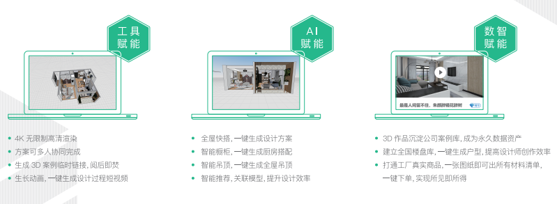 針對這一痛點,圖滿意滲透了用戶從靈感搜集、量房簽約到施工選材的全流程,為裝企提供從獲客到簽單的全鏈路賦能。同時,圖滿意正在打造集樓盤庫、案例庫、方案庫與商品庫于一體的智能設計系統(tǒng),搭建圖滿意場景化銷售平臺以及運營體系,助力裝企實現一站式銷售。