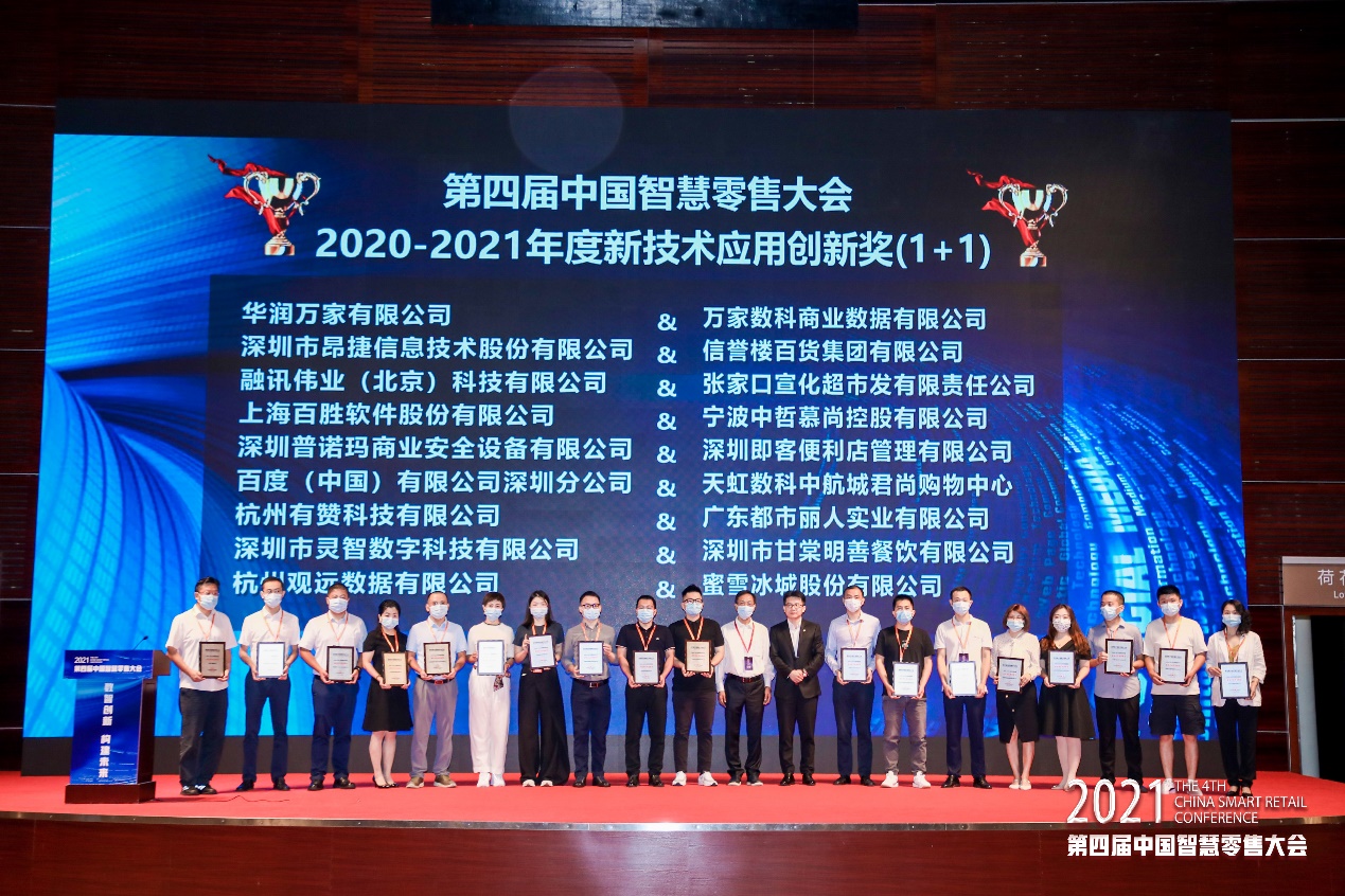 大會(huì)開幕式上頒發(fā)“2020-2021年度智慧零售系列大獎(jiǎng)”,大會(huì)組委會(huì)從行業(yè)新技術(shù)應(yīng)用創(chuàng)新;經(jīng)營、商業(yè)、組織、管理、服務(wù)等模式創(chuàng)新;全渠道、全產(chǎn)業(yè)鏈、全生產(chǎn)要素賦能等生態(tài)創(chuàng)新;領(lǐng)軍者推動(dòng)智慧零售創(chuàng)新發(fā)展等四個(gè)維度,共頒發(fā):新技術(shù)應(yīng)用創(chuàng)新獎(jiǎng)、模式創(chuàng)新獎(jiǎng)、生態(tài)創(chuàng)新獎(jiǎng)、創(chuàng)新人物獎(jiǎng)四大獎(jiǎng)項(xiàng)。華潤萬家、靈智數(shù)科、有贊、樂信等企業(yè)獲此榮譽(yù),天虹股份譚曉華、百果園焦岳等人獲得創(chuàng)新人物獎(jiǎng)。