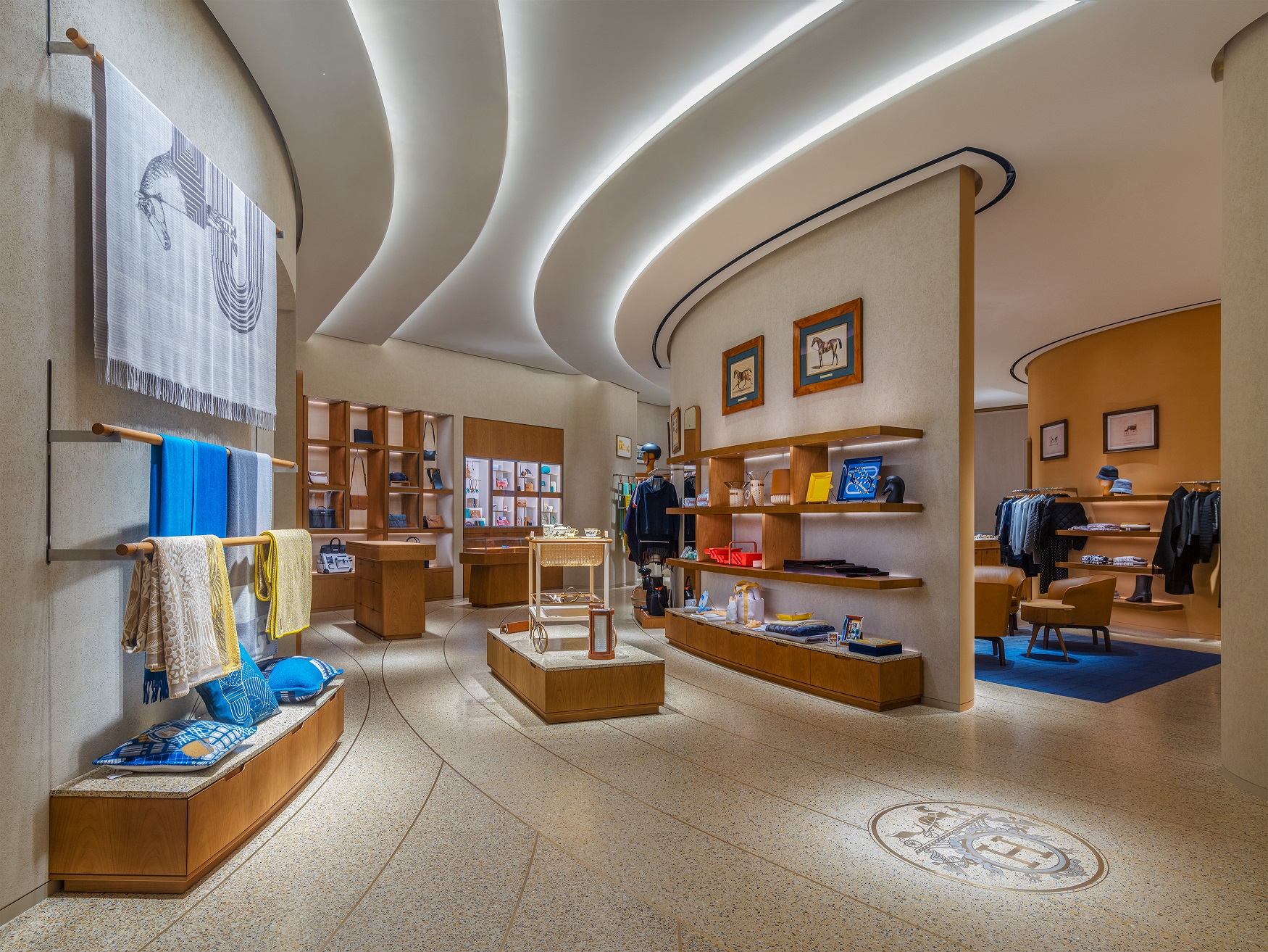 愛馬仕深圳灣萬象城專賣店絲巾、香水和美妝區(qū)域