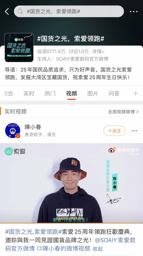 讀特客戶端·深圳新聞網(wǎng)2021年10月22日訊(記者 田志強)近日,索愛廣州25周年慶領跑活動在網(wǎng)絡持續(xù)發(fā)酵,引爆輿論熱烈關注。作為音頻數(shù)碼行業(yè)首個登錄廣州塔的國貨品牌,索愛25周年領跑活動吸引了大量的媒體和達人齊聚廣州塔,索愛品牌和產品熱度以廣州為中心迅速向周邊地域傳播。在索愛冠名高鐵、簽約陳小春夫婦為品牌形象大使等品牌事件的疊加聚合效應下,#國貨之光,索愛領跑#等話題和熱度持續(xù)傳播至各社交平臺,各個類別KOL相繼為索愛發(fā)聲,僅在微博平臺的話題閱讀量已突破數(shù)千萬。