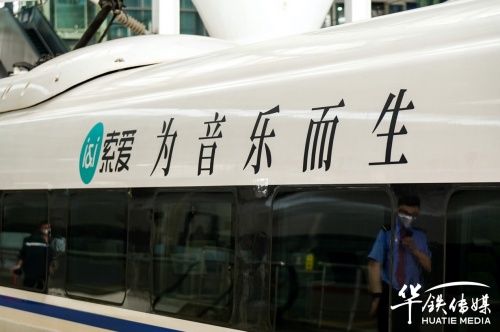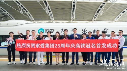 10月28日上午,索愛集團(tuán)董事長(zhǎng)劉建佳、總經(jīng)理全雪梅、華鐵傳媒集團(tuán)廣州分公司銷售總經(jīng)理劉延群等領(lǐng)導(dǎo)嘉賓共同為冠名發(fā)車儀式揭幕、剪彩、互贈(zèng)紀(jì)念禮品,在現(xiàn)場(chǎng)嘉賓的共同見證下,張貼索愛全新品牌代言人陳小春夫婦形象宣傳海報(bào)的“索愛-為音樂而生”高鐵冠名列車正式啟程。