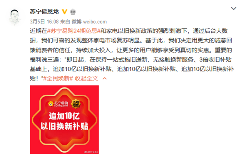 自2月10日聯(lián)合各大家電品牌推出“開倉計(jì)劃”以來,蘇寧315“全民煥新節(jié)”不斷往消費(fèi)市場注入強(qiáng)心劑。