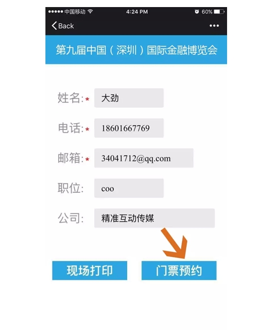 2、如實填寫相關參展信息,點擊【門票預約】提交。