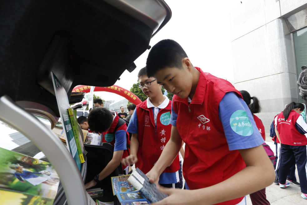 深圳市實驗學校中學部初二(1)班此次組織了三輛車參加本次車尾箱換書活動,他們帶來了300余本書,剛一擺出來,車前就圍滿了人。記者在現(xiàn)場看到,實驗學校中學部為此次車尾箱捐換書活動準備的書籍質(zhì)量非常高,種類也十分豐富,涵蓋了童話故事,文學名著,歷史,人物傳記等多個類別,其中以廣大中小學生非常喜愛的書籍為主。并在活動結(jié)束時,將帶來的300余本書全部捐獻出去。