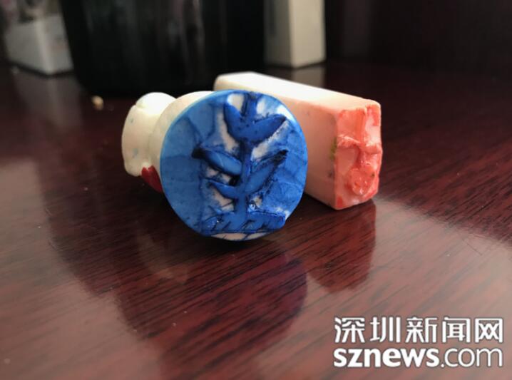 小葉老師用于課堂激勵的自制印章“小苗苗”和“紅果果”