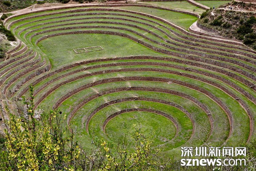 在廣袤的山丘間,呈現(xiàn)眾多頗似環(huán)形階梯劇場的下沉式梯田,其深度從百米到160米不等。一塊梯田的十多層梯級環(huán)環(huán)相連、層級勻稱的圓形梯田好像外星人的繪畫杰作。李仁奇攝