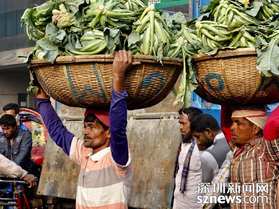 深圳新聞網(wǎng)2019年1月8日訊 在孟加拉,無論城市,還是鄉(xiāng)下,人們頭頂重物的情景,確實(shí)是無處不在的。李仁奇攝