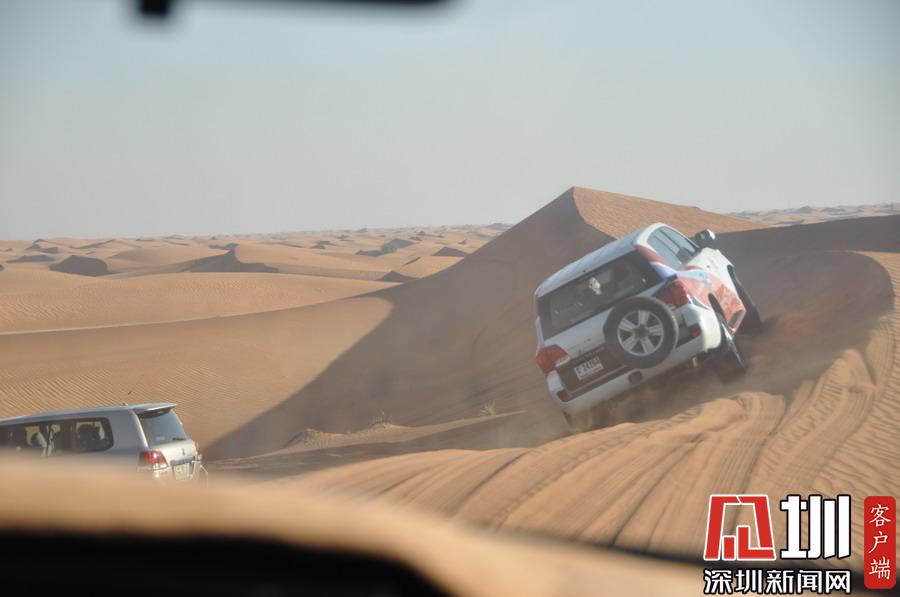 去迪拜,一個最不可錯過的體驗項目就是"沖沙"。所謂沖沙,就是高速的車在沙丘里不斷爬坡、俯沖、騰飛、落下等等一系列驚險的動作。李仁奇攝