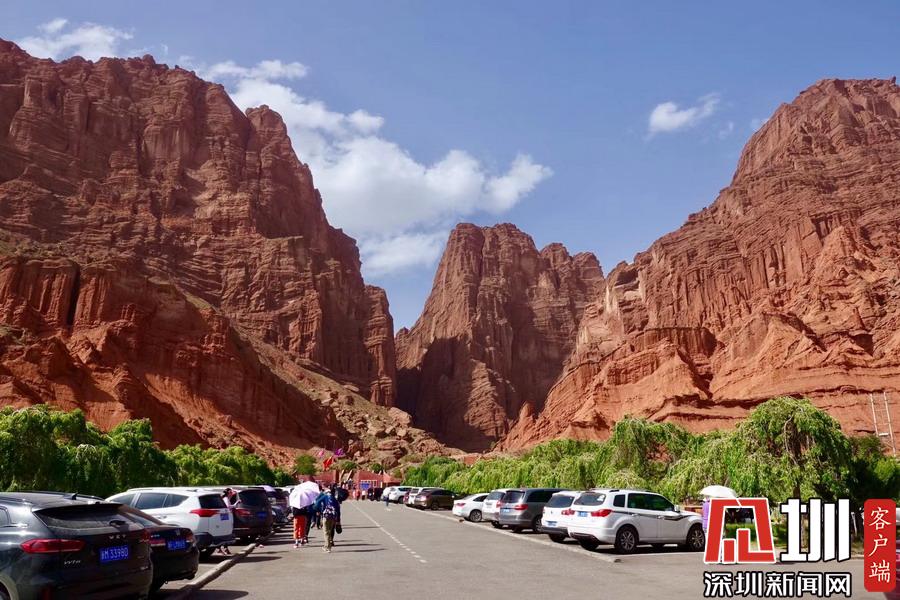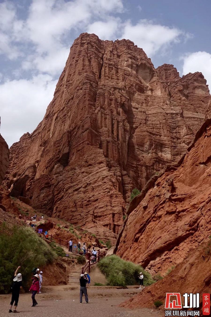 獨(dú)庫公路經(jīng)過的阿克蘇地區(qū)庫車縣以北60多公里的天山山脈里,還有一處由赭紅色巨大山體組成的幽深峽谷。其主谷長約3.7公里,峽谷內(nèi)怪石嶙峋、流水潺潺、一步一景,令人驚嘆大自然的鬼斧神工。李仁奇 攝