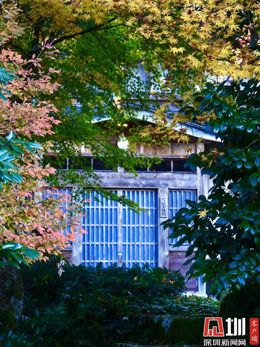 在明媚的陽光下,日本風(fēng)格民居掩映在紅葉之中,房前屋后的小景也很漂亮。李仁奇攝