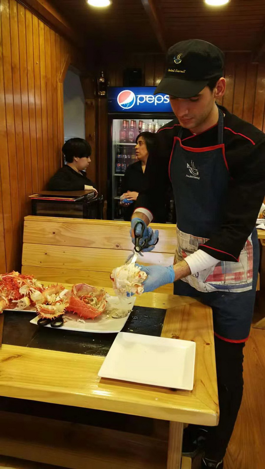蜘蛛蟹(又名皇帝蟹)只產于南北兩極冰冷的海洋中,大個的重量可達5公斤以上。資深旅游者大多知道美國阿拉斯加的蜘蛛蟹是當?shù)靥禺a美味,但很多人并不了解智利、阿根廷接近南極洲的海域有比阿拉斯加蜘蛛蟹更大、味道更好、價格更低的同類海產品。李仁奇攝