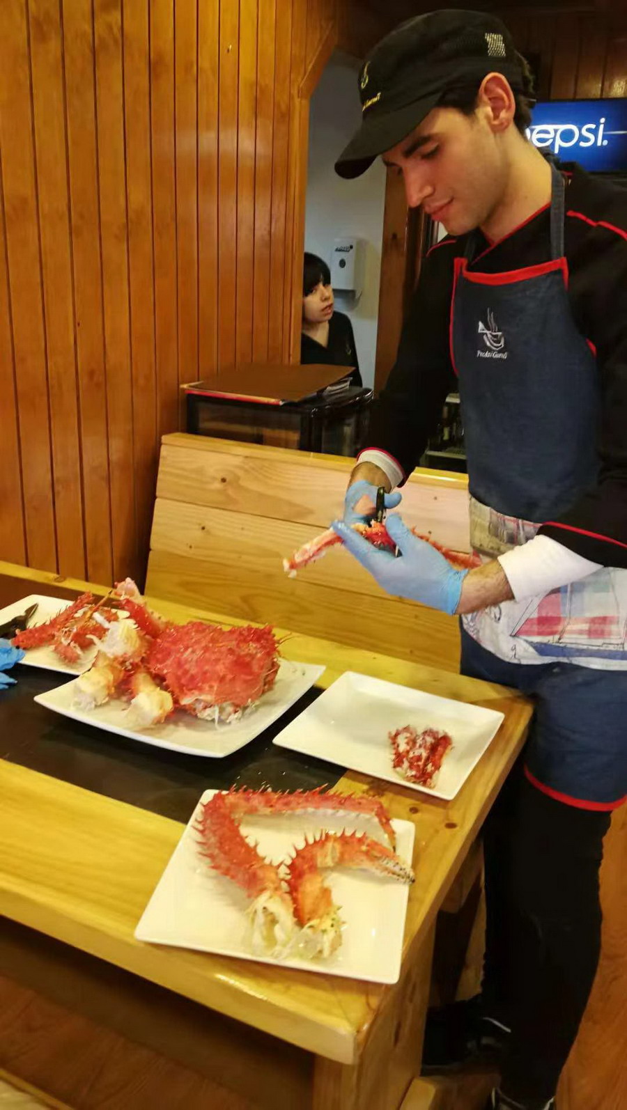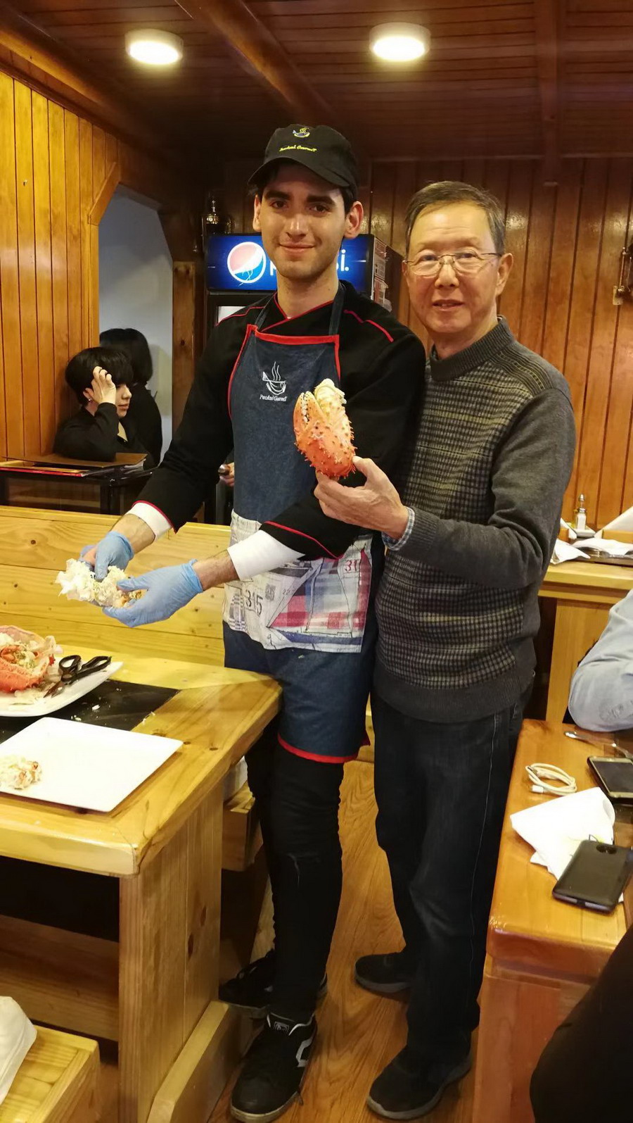 網友們選了一只5公斤多的活蟹,連同其他海鮮和兩瓶酒,9個人消費了14750比索,合人民幣1500元左右,這個價格遠低于阿拉斯加,只是國內消費蜘蛛蟹價格的不足一成。李仁奇攝