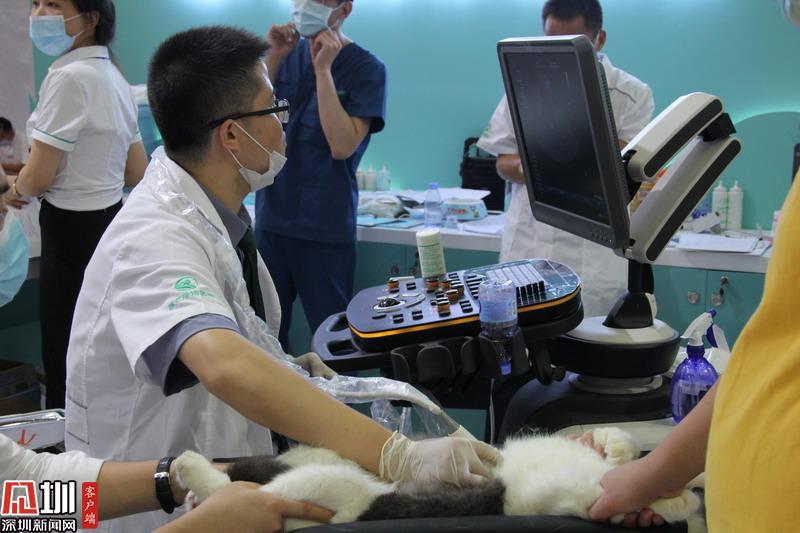 寵物醫(yī)生現(xiàn)場為寵物進(jìn)行身體檢查。
