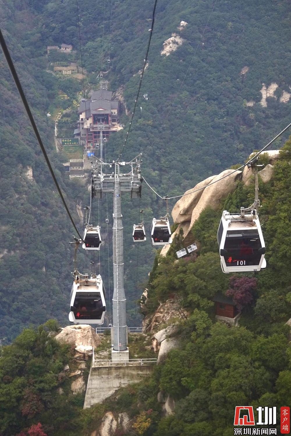 索道設備由法國波馬公司制造,整體安全與運營系統(tǒng)采用最尖端的客運索道技術。華山索道一覽。李仁奇攝。