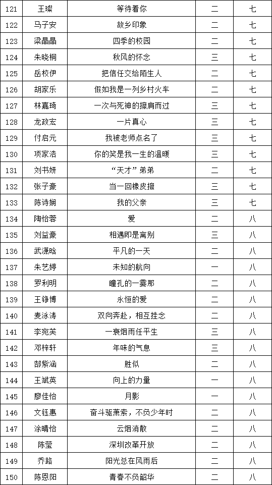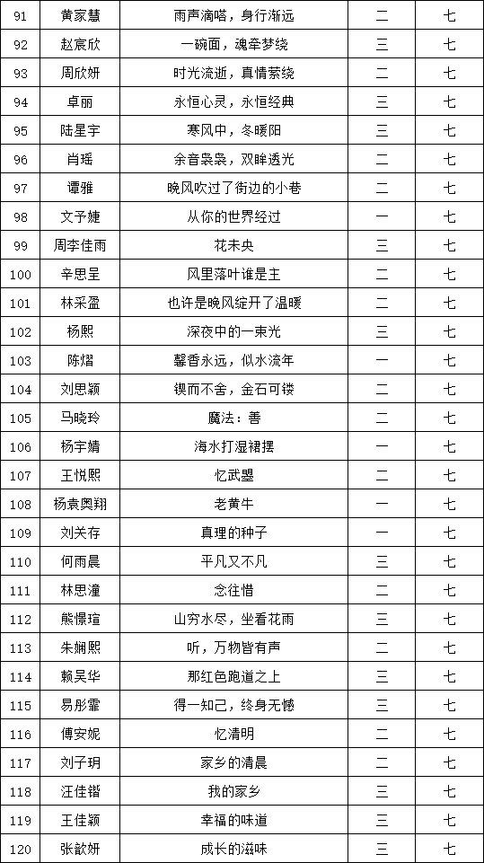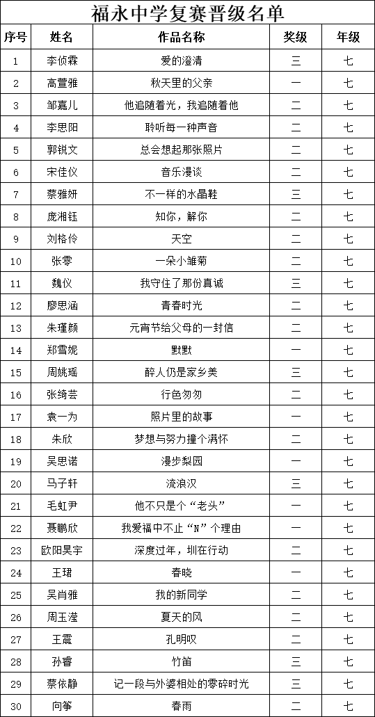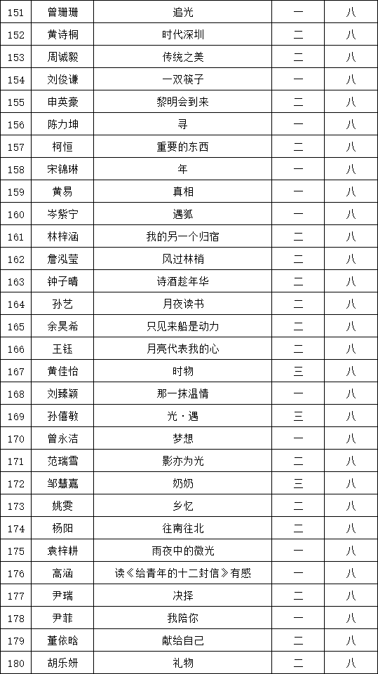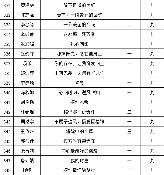 自2021年1月,活動(dòng)征稿啟動(dòng)以來,獲得了深圳市廣大中小學(xué)生、教師、文學(xué)愛好者的熱烈響應(yīng)積極參與,吸引了深圳百余所學(xué)校的上萬人關(guān)注報(bào)名。現(xiàn)公布福永中學(xué)晉級(jí)復(fù)賽名單如下: