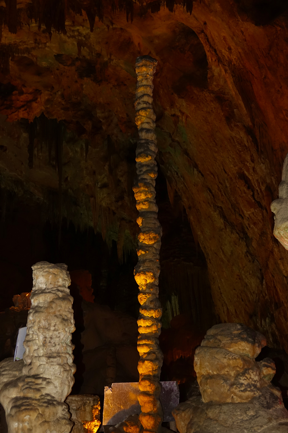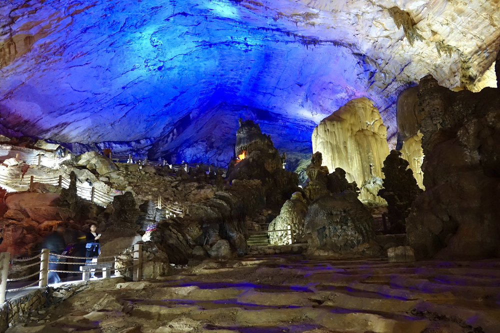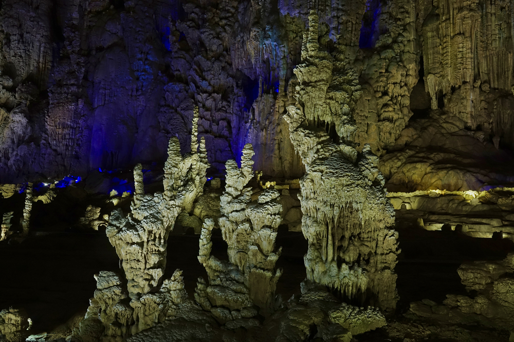 全洞容積達(dá)500萬立方米,有上、中、下三層,洞中遍布石筍、石柱、石芽、石旗等四十多種洞穴堆積物,形成千姿百態(tài)的巖溶景觀。李仁奇 攝