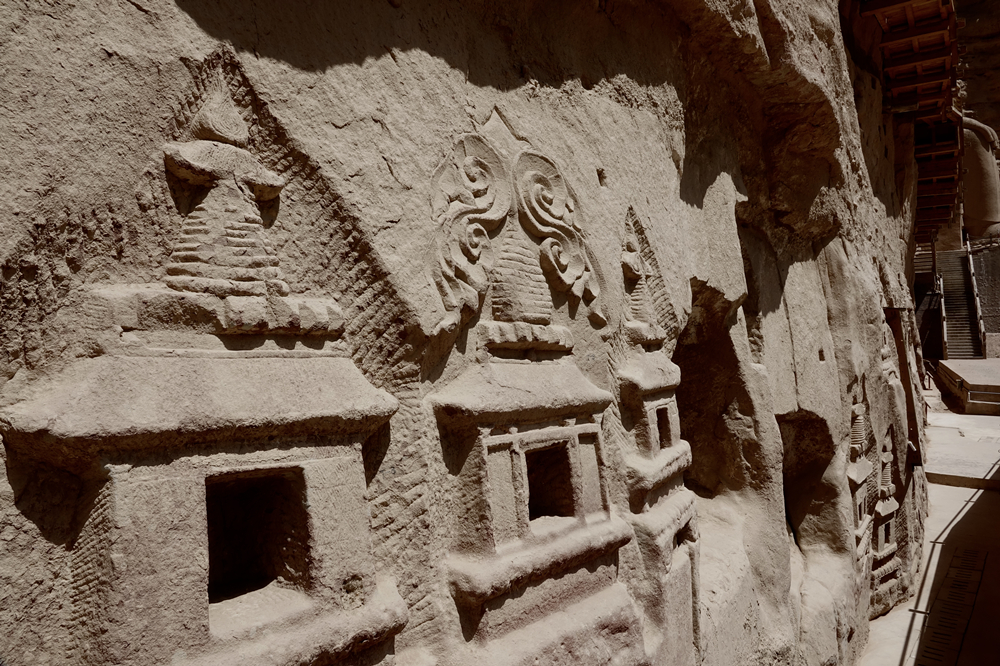 隱刻的三座小石塔。炳靈寺石窟這種浮雕塔不少。李仁奇 攝