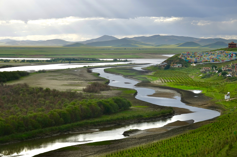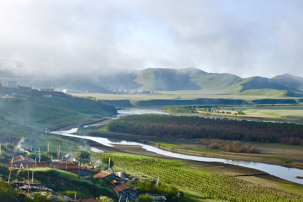 黃河的這一段流程是四川與甘肅的界河,河西為甘肅,河東為四川。黃河自甘肅一側(cè)來,白河自黃河第一灣灣頂匯入,型如“S”型,黃河之水猶如仙女的飄帶從天邊緩緩飄來,在四川邊上輕輕撫了一下又轉(zhuǎn)身飄回青海,故此地稱九曲黃河第一灣。李仁奇 攝