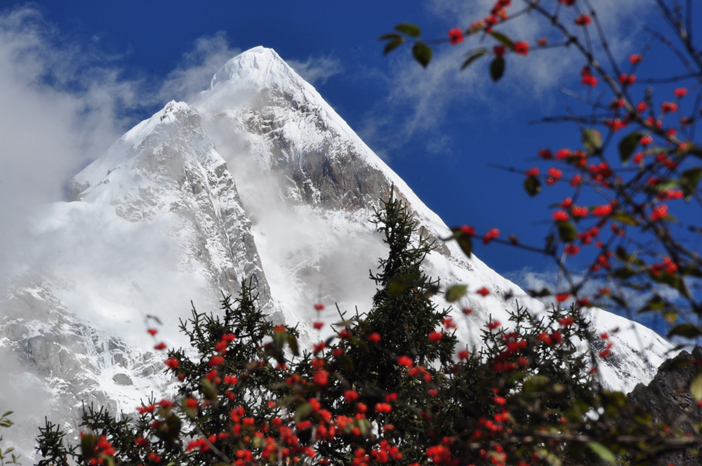 四座山峰長年冰雪覆蓋,因幺妹身材最為苗條,經(jīng)常云遮霧繞,最難窺得全貌,素有“蜀山之后”、“東方的阿爾卑斯”之稱,與“蜀山之王”貢嘎山遙遙相望。李仁奇 攝