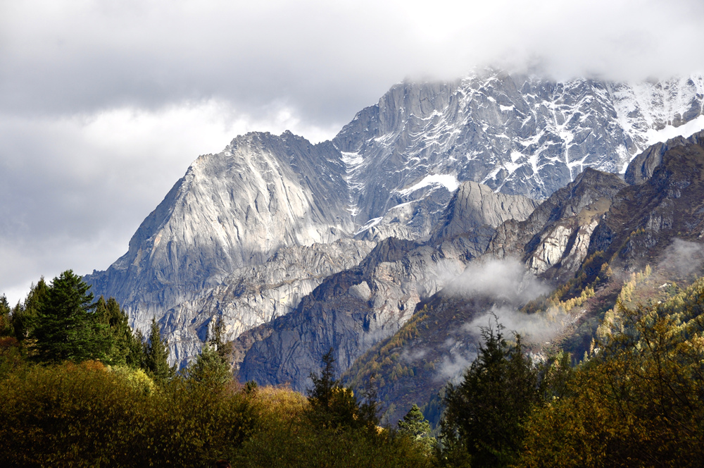 四姑娘山以雄峻挺拔聞名,山體陡峭,直至藍天,冰雪覆蓋,銀光照人。山麓森林茂密,綠草如茵,清澈的溪流潺潺不絕,宛如一派秀美的南歐風(fēng)光。李仁奇 攝