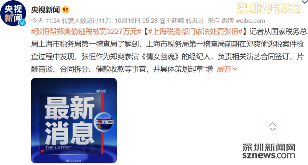 (相關(guān)報(bào)道:鄭爽逃稅張恒被罰3227萬(wàn)明星經(jīng)紀(jì)人為啥也被盯上了)