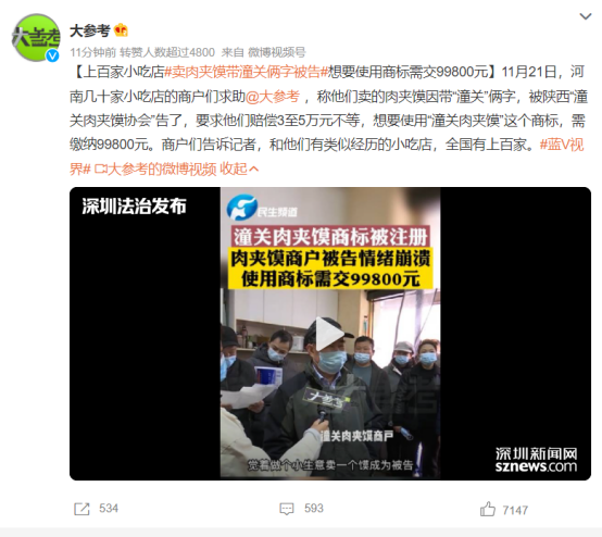 (相關(guān)報(bào)道:讓眾多店家崩潰的潼關(guān)肉夾饃商標(biāo)許可費(fèi)國家知識產(chǎn)權(quán)局回應(yīng)了)
