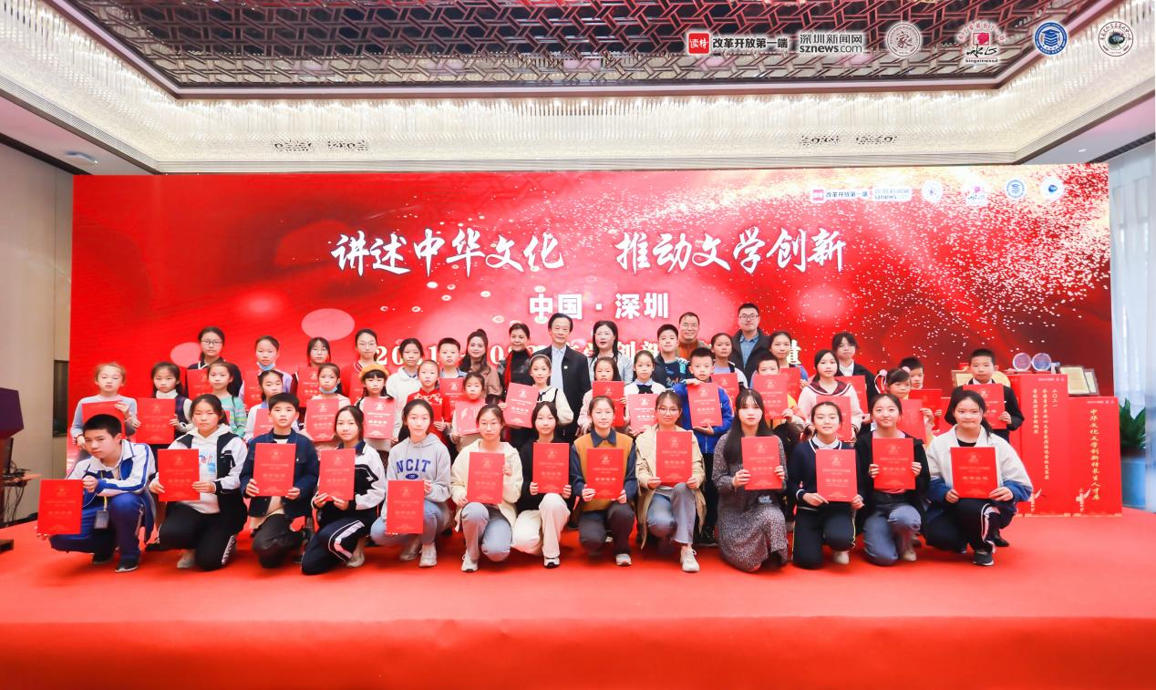 出席嘉賓與獲獎(jiǎng)師生文友合影