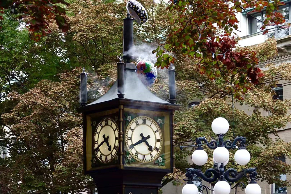 蒸汽鐘,顧名思義是用蒸汽作動力的鐘,鐘盤的頂端有一大四小5個汽笛,每隔15分鐘,汽笛都會嗚叫,并噴出蒸汽。每逢整點(diǎn),則發(fā)出悅耳的音樂聲。李仁奇 攝