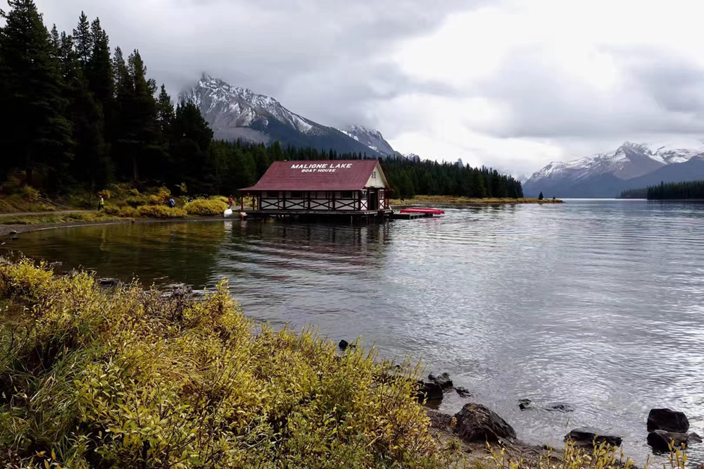 馬林湖是加拿大落基山脈最大的冰川湖,寬22公里、面積2066平方米、深約1公里。在湖的周邊能看到野生動(dòng)物的蹤跡,可以乘機(jī)動(dòng)船游覽,眺望兩側(cè)有冰川的群山。李仁奇 攝