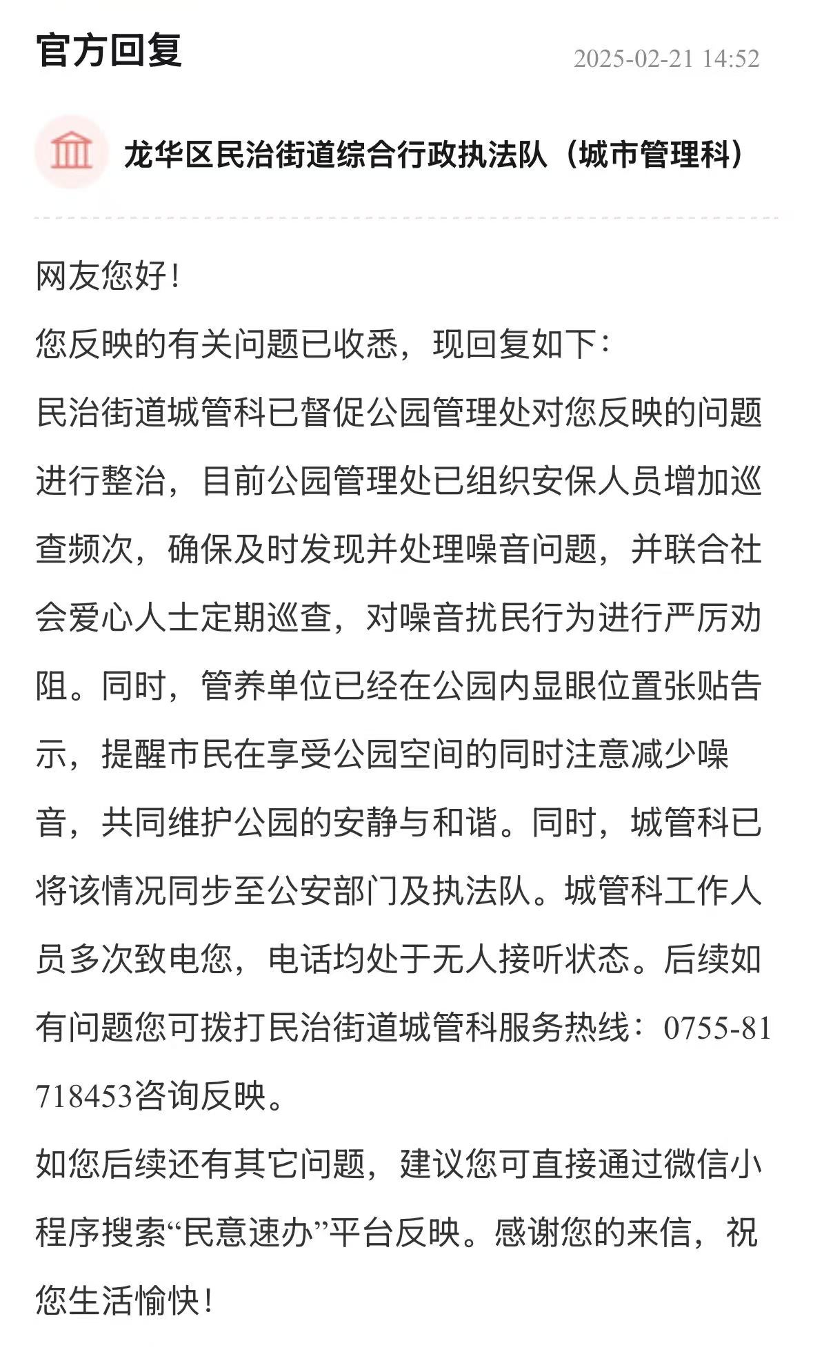 有市民反映龍華區(qū)一公園空地處有市民跳廣場(chǎng)舞、唱歌,噪音擾民。