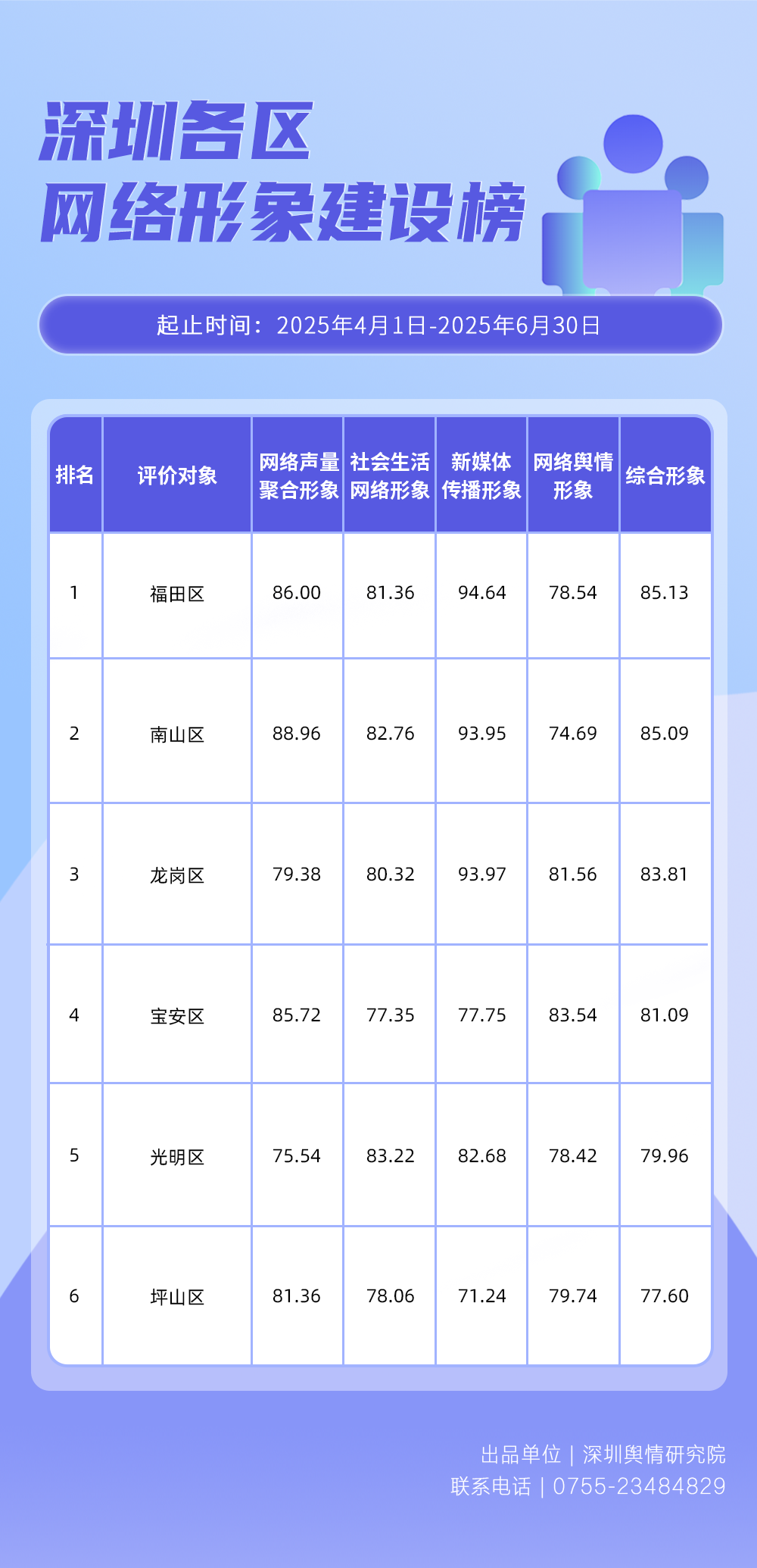 4-6月,各區(qū)各單位網(wǎng)絡(luò)形象建設(shè)取得了哪些成效?《深圳各區(qū)各單位網(wǎng)絡(luò)形象建設(shè)榜》帶您了解。本期榜單數(shù)據(jù)統(tǒng)計時間范圍為2025年4月1日至6月30日。