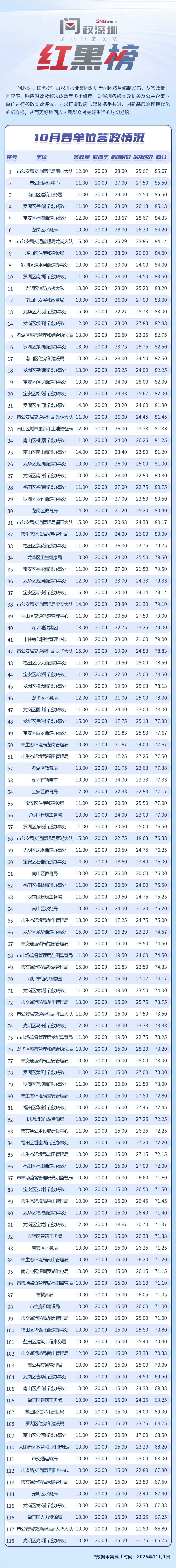10月,深圳各級(jí)黨政機(jī)關(guān)及公共企事業(yè)單位在“深圳論壇”答政情況如下:
