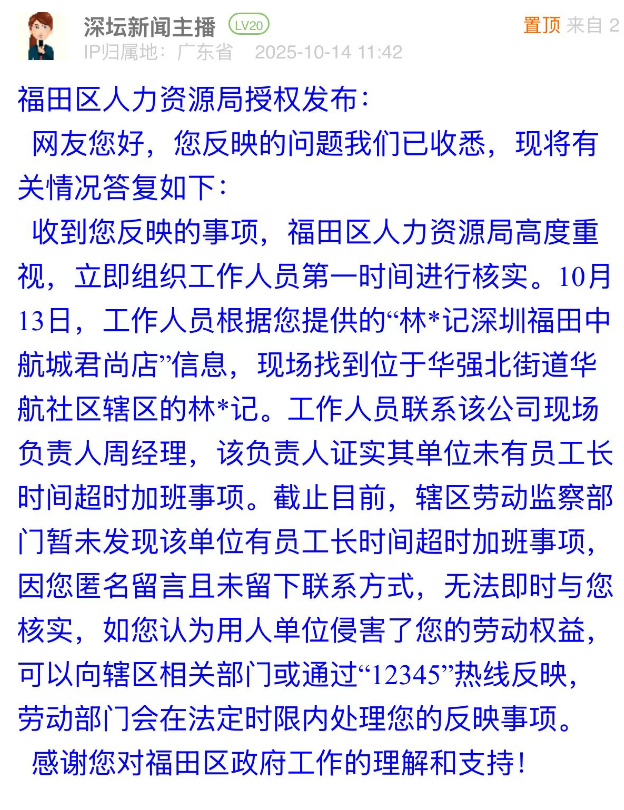 優(yōu)化建議:網(wǎng)民投訴的核心有兩點(diǎn),一是外包公司無(wú)勞務(wù)派遣資質(zhì)卻代繳社保、發(fā)放工資,二是工作時(shí)間過(guò)長(zhǎng)。福田區(qū)人力資源局雖回應(yīng)已核實(shí)涉事餐飲單位“無(wú)長(zhǎng)時(shí)間超時(shí)加班”,但對(duì)網(wǎng)民反映的外包公司無(wú)資質(zhì)這一關(guān)鍵問(wèn)題未作回應(yīng)。此情況反映出,資質(zhì)核查工作亟需加強(qiáng),如對(duì)相關(guān)餐飲單位開(kāi)展用工合規(guī)專項(xiàng)檢查,以精準(zhǔn)舉措解決無(wú)資質(zhì)外包這一核心痛點(diǎn),提升市民對(duì)勞動(dòng)者權(quán)益保障工作的認(rèn)可度。