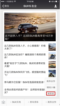 近日,深圳前海行天下汽車服務有限公司官方微信“SUV車友會”正式入駐“@深圳”平臺。