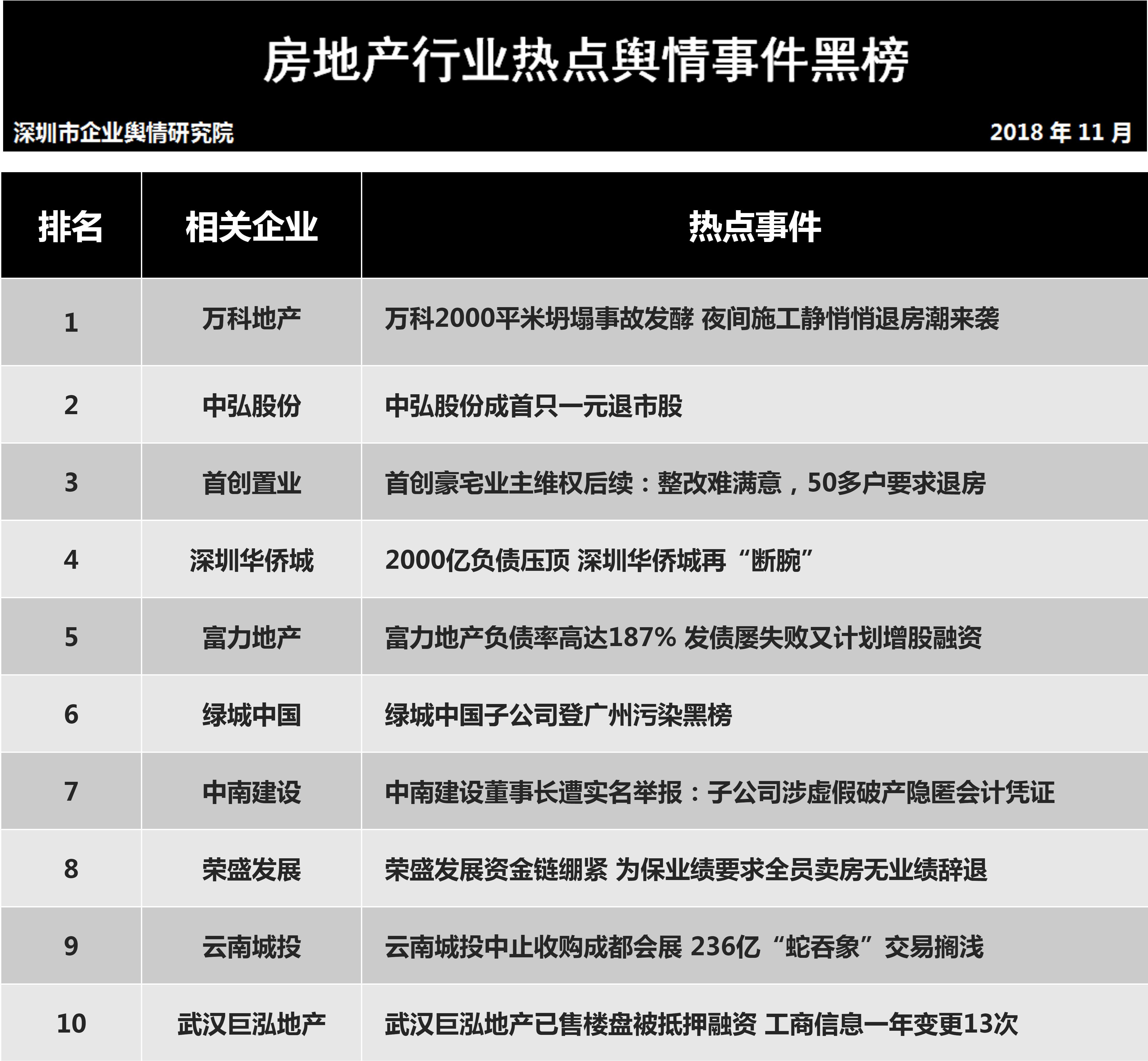 1月7日,深圳企業(yè)輿情研究院發(fā)布第十一批企業(yè)輿情榜單。本次榜單重點聚焦房地產及醫(yī)藥保健兩個行業(yè)。