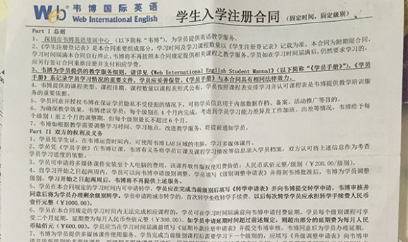 網(wǎng)友在深圳韋博英語上6節(jié)課花費34800元 退款難