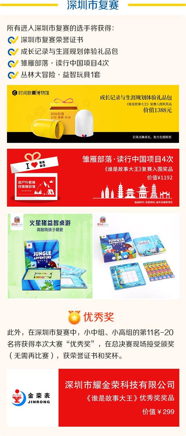 讓閱讀成為動人的風景,讓故事的魅力感動深圳。為助力建設良好的青少年閱讀環(huán)境,激發(fā)學生閱讀興趣,倡導親子閱讀,共建和諧家庭關系。2020年,第二十一屆深圳讀書月主題活動“誰是故事大王·第四季”在共青團深圳市委員會、深圳市關愛行動組委會辦公室的指導下再出發(fā)。更長的活動周期,更豐富的參與形式,更專業(yè)的賽制,“誰是故事大王·第四季”等你來解鎖與挑戰(zhàn)!