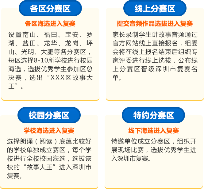 讓閱讀成為動人的風景,讓故事的魅力感動深圳。為助力建設(shè)良好的青少年閱讀環(huán)境,激發(fā)學生閱讀興趣,倡導親子閱讀,共建和諧家庭關(guān)系。2020年,第二十一屆深圳讀書月主題活動“誰是故事大王·第四季”在共青團深圳市委員會、深圳市關(guān)愛行動組委會辦公室的指導下再出發(fā)。更長的活動周期,更豐富的參與形式,更專業(yè)的賽制,“誰是故事大王·第四季”等你來解鎖與挑戰(zhàn)!
