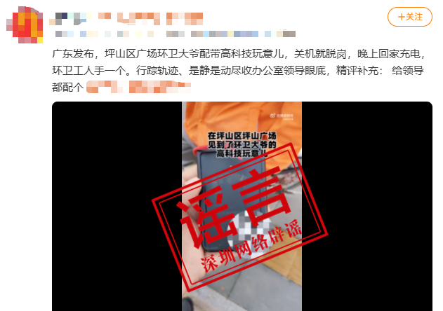 深圳一地給環(huán)衛(wèi)工人戴定位工牌?最新回應(yīng):假的!